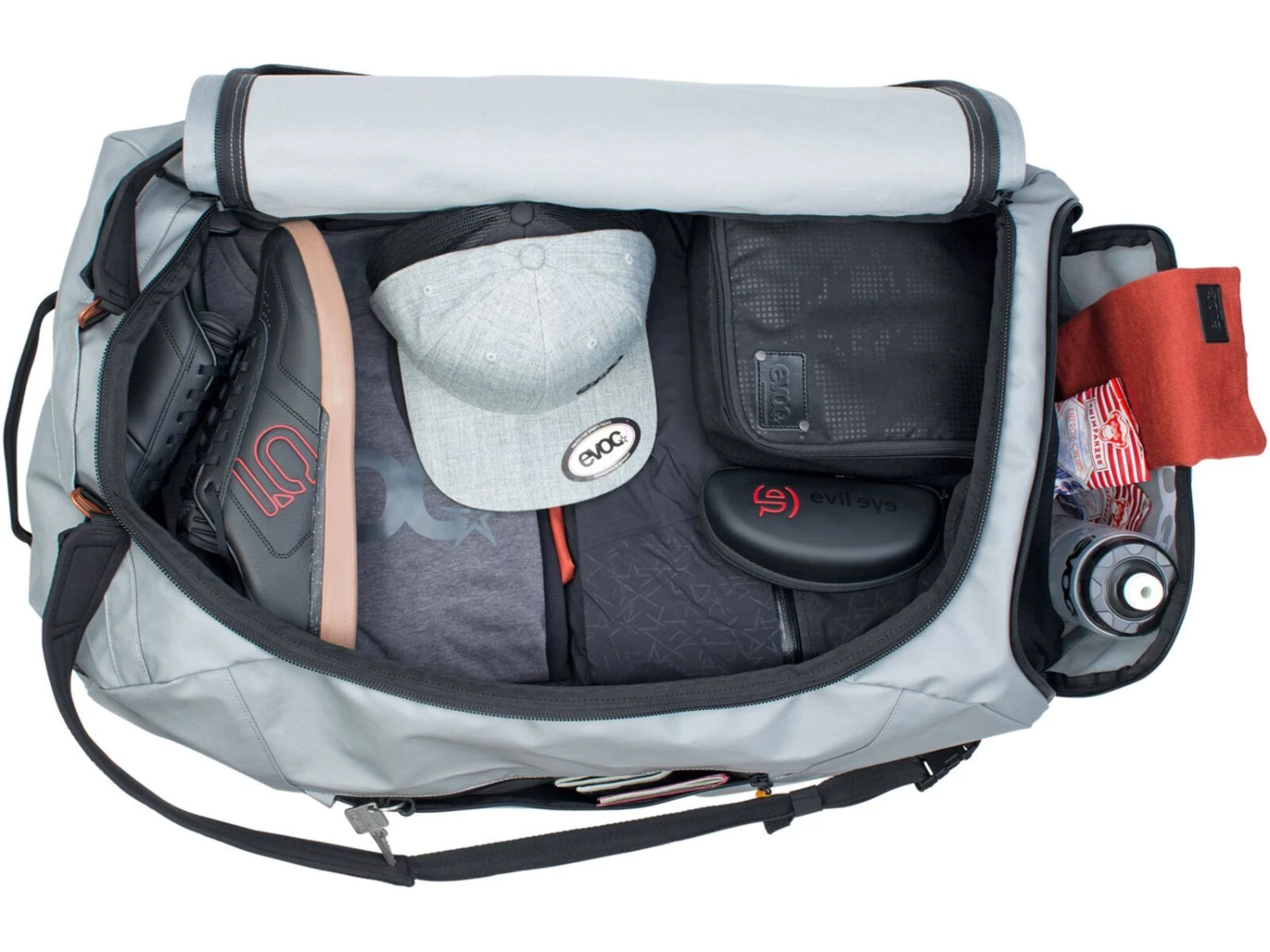 Eine Mischung aus Seesack und wasserresistenter Tasche mit verschiedenen Trageoptionen für eine Wochenendexpedition. Der robuste Evoc Duffle Bag hat gut organisierten Stauraum, ermöglicht unkomplizierten Transport von Ausrüstung und ist gewappnet gegen raue Untergründe und harte Landungen.