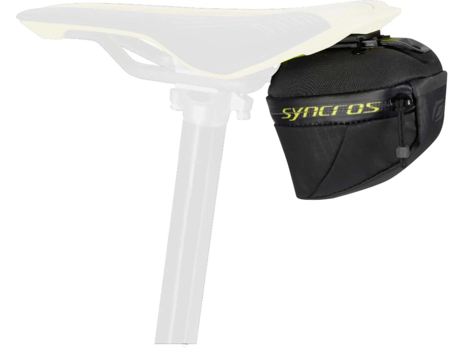 Die Syncros iS Quick Release 450 Satteltasche lässt sich direkt über einen Kunststoff-Schieber unter allen Syncros-Sätteln mit zwei Gewindeeinsätzen befestige und ist durch einen Kunststoff-Hebel mit einem Klick abnehmbar. Die EVA-Hartschalenkonstruktion eignet sich ideal für eine geradlinige Integration unter dem Sattel.