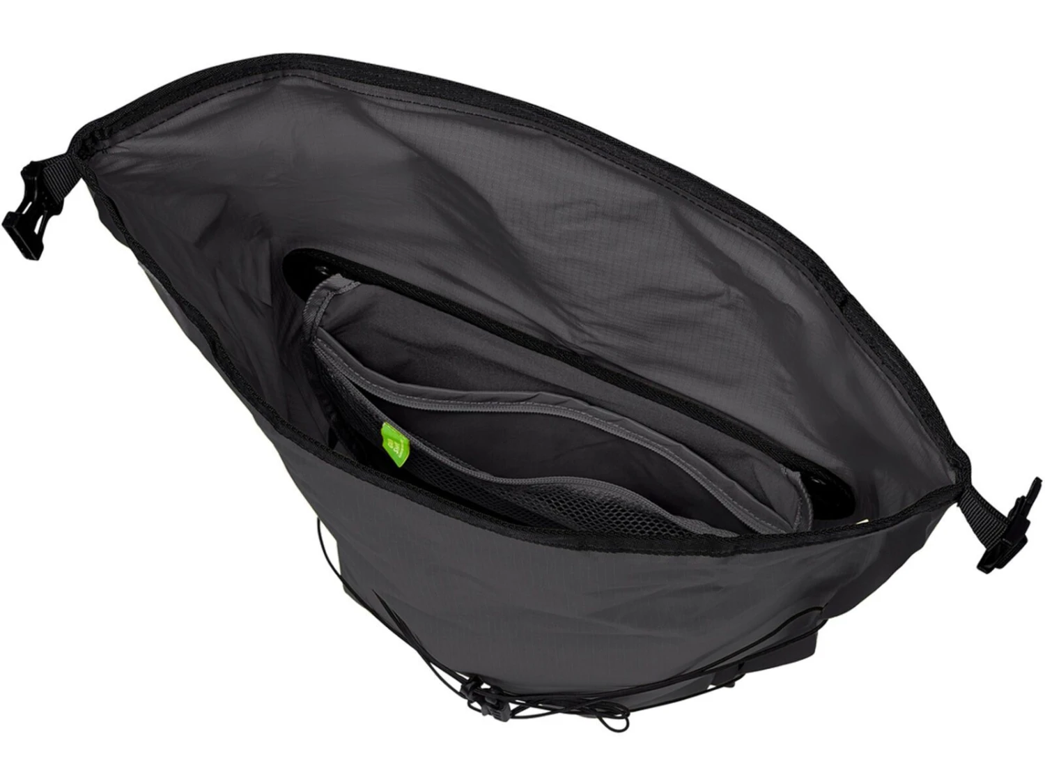 Leichtgewicht voraus! Die Aqua Front Light Vorderradtaschen sorgen für Erleichterung – denn hier wurde auf überflüssigen Ballast verzichtet. Leidenschaftliche Radreisende kennen das: Da hat man beim Gepäck schon hunderte Gramm gespart – und dann heben die Radtaschen das Gewicht nochmal ordentlich an. Die Aqua Front Light besticht durch ihre durchdachte Materialkombination. Die 2D-verschweißte Plane ist dünner, aber nicht weniger robust als bei den schwereren Taschen aus der Aqua-Serie. Statt eines aufwändigen Komprimierungssystems kommt eine Kordelspinne zum Einsatz, hinter der sich zugleich Jacken, Shirts und andere Kleidungsstücke schnell und unproblematisch unterbringen lassen. Diese Vorderradtaschen können genauso gut als Hinterradtaschen verwendet werden. Die Aqua Front Light ist damit nicht nur perfekt für Bikepacking-Abenteuer und anspruchsvolle Radreisen geeignet, sondern – in Kombination mit ihrem Schultergurt – auch optimal als Accessoire für Commuter. Das Gesamtvolumen beider Taschen beträgt 22 Liter. Die Aqua Light Vorderradtaschen werden komplett PVC-frei aus zu 100 % recycelten Econyl in Deutschland hergestellt.