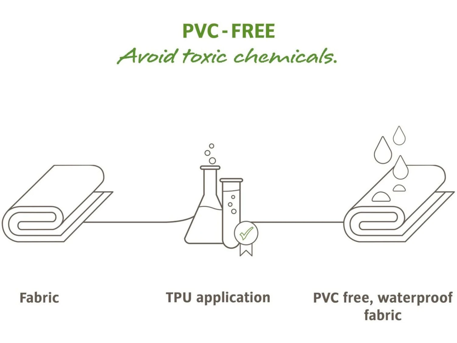 • PVC frei?Das Vaude-Siegel PVC-free bedeutet, dass dieses Produkt komplett ohne PVC (Polyvinylchlorid) hergestellt ist. Sieht aus wie LKW-Plane, ist genauso langlebig und wasserdicht, besteht aber aus PU (Polyurethan) beschichtetem Textilgewebe statt aus PVC. PVC enthält häufig Weichmacher (Phtalate), die im Verdacht stehen, gesundheitsschädlich zu sein.